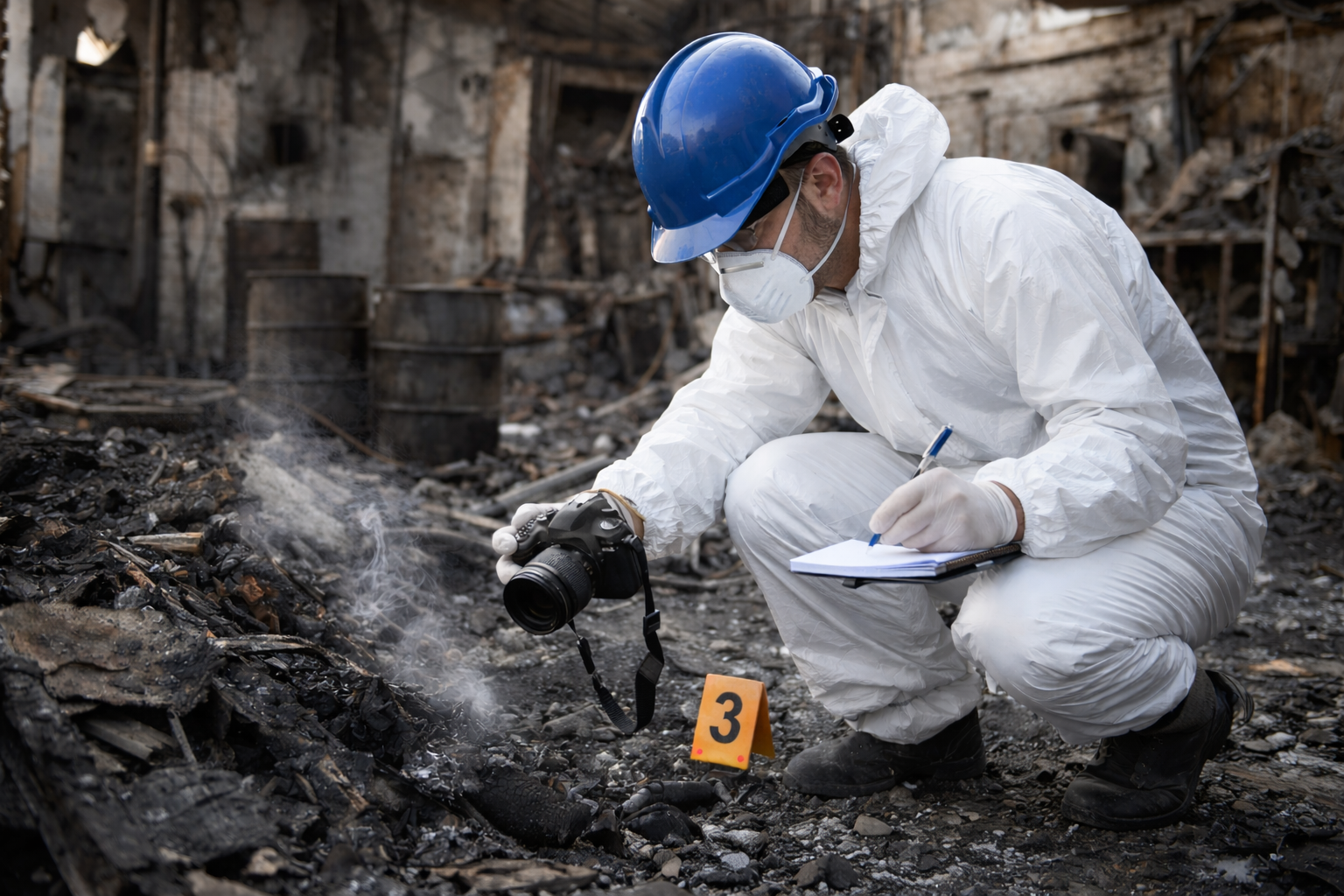 "Investigación científica para la determinación de origen, causa y desarrollo del incendio. Análisis de propagación y cumplimiento de normativas de protección contra incendios."